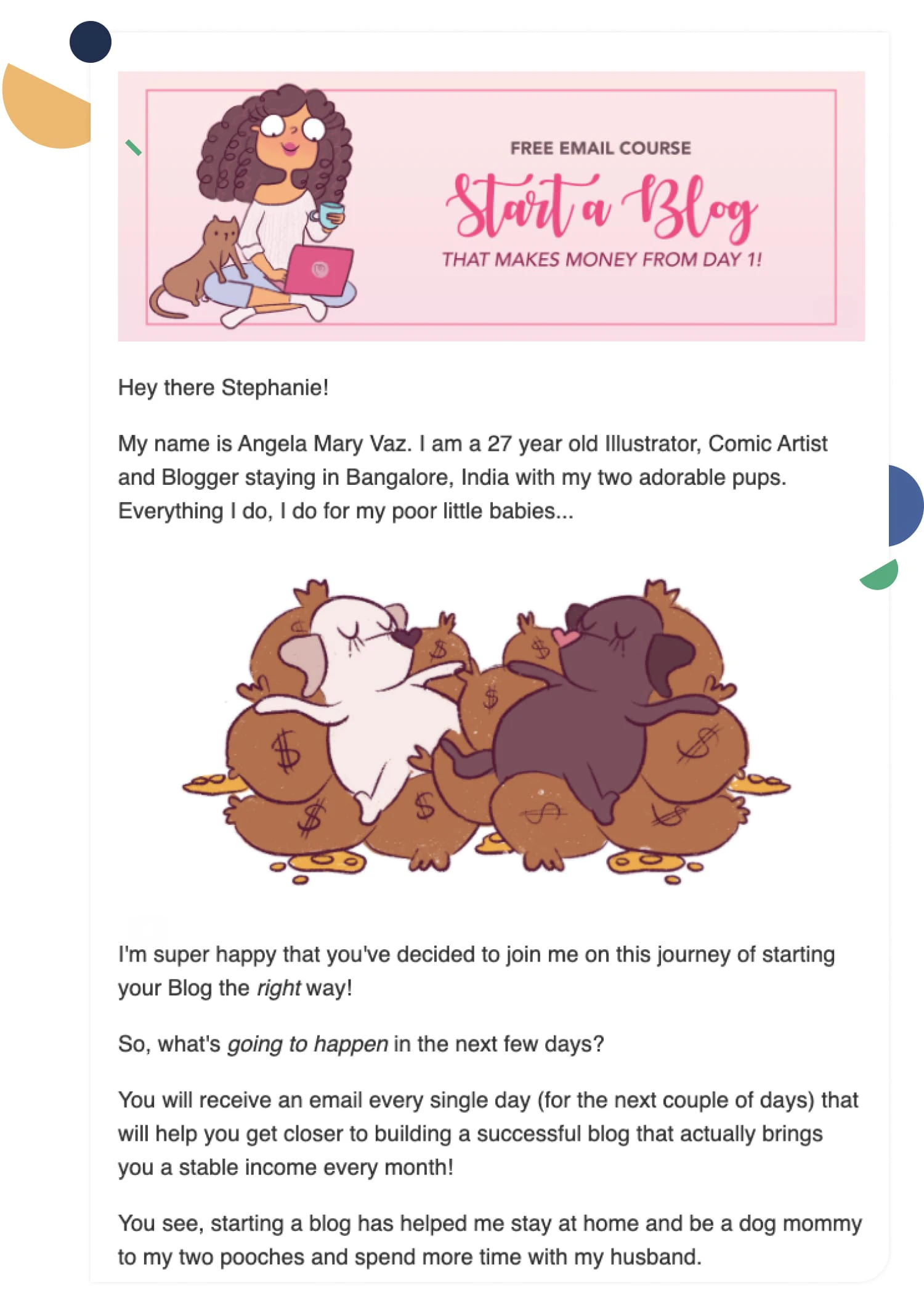 Instead, you can utilize your website and email list to provide value to your audience over fourth dimension and connect with new buyers. Welcome emails, like the one from Angela at Stray Curls below, introduce new subscribers to your perspective and start the relationship on a positive note .